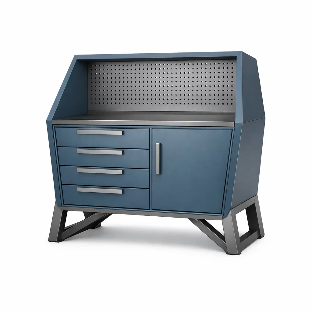 Établi en Métal et Bois avec 4 Tiroirs et Armoire