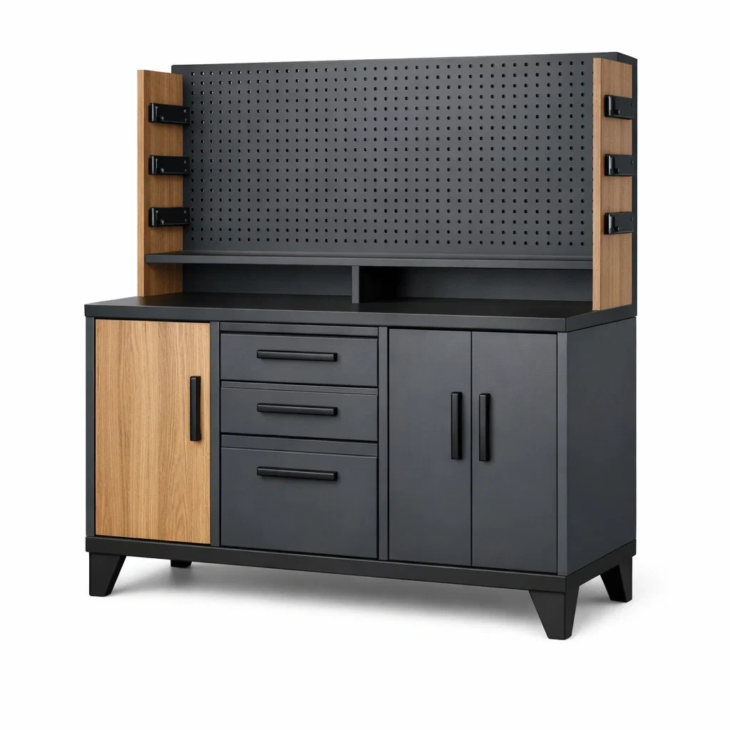 Matériaux : Structure en bois aggloméré avec finition mélaminée, arrière en acier perforé